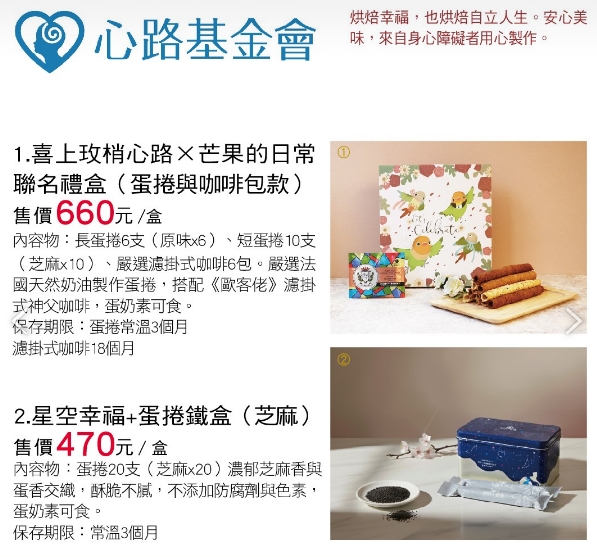 ⑴ 喜上玫梢心路x芒果的日常聯名禮盒(蛋捲與咖啡包)/盒 $660