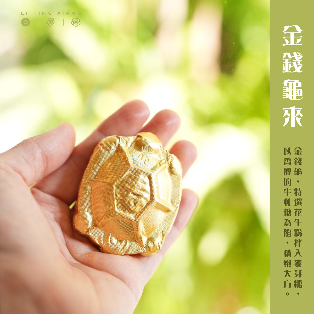 ▶ 金錢龜 包裹奶香內餡與薄如蟬翼的金箔紙,是求財迎福的象徵。