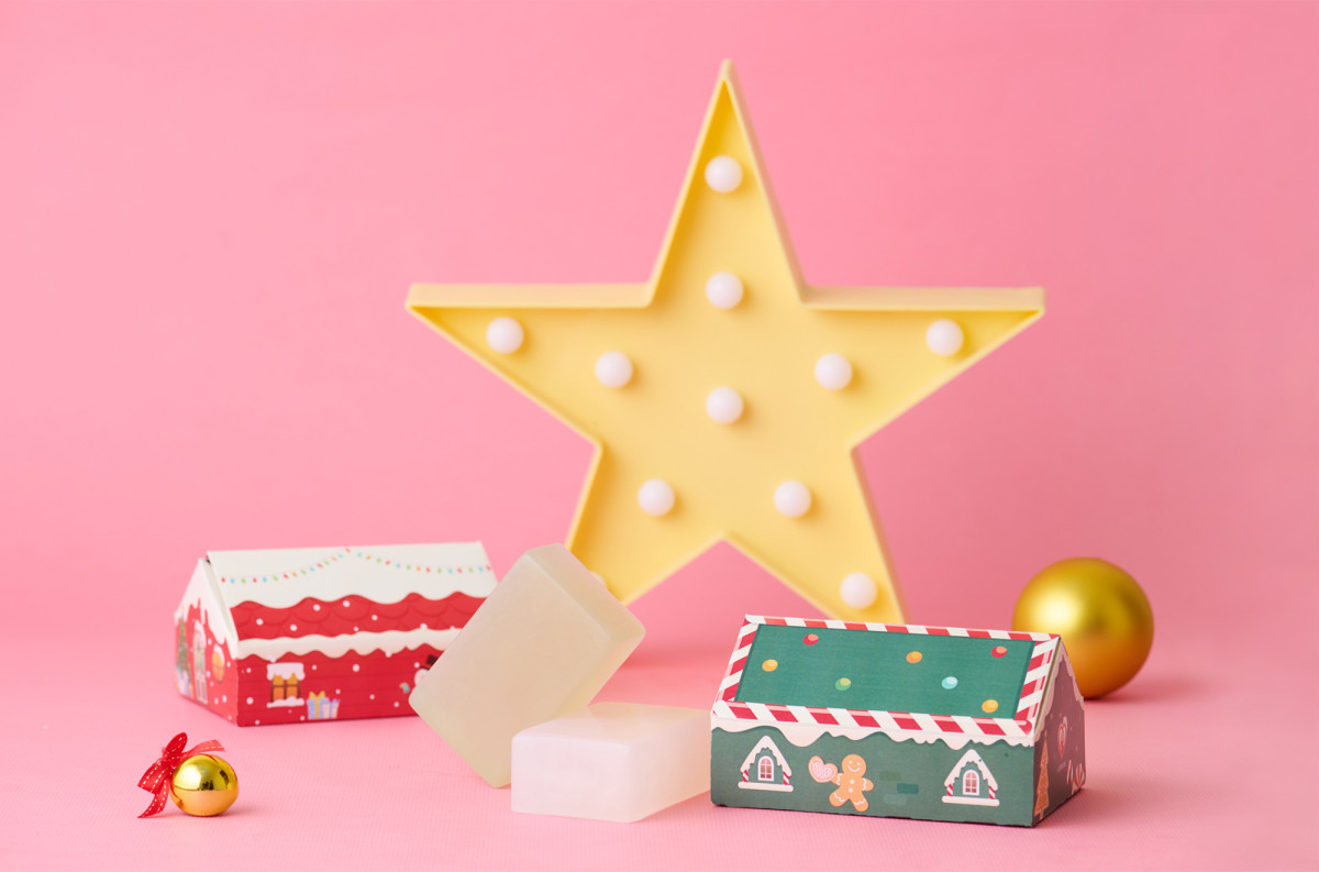 規  格: 100g手工皂2顆/2盒;聖誕小屋造型盒